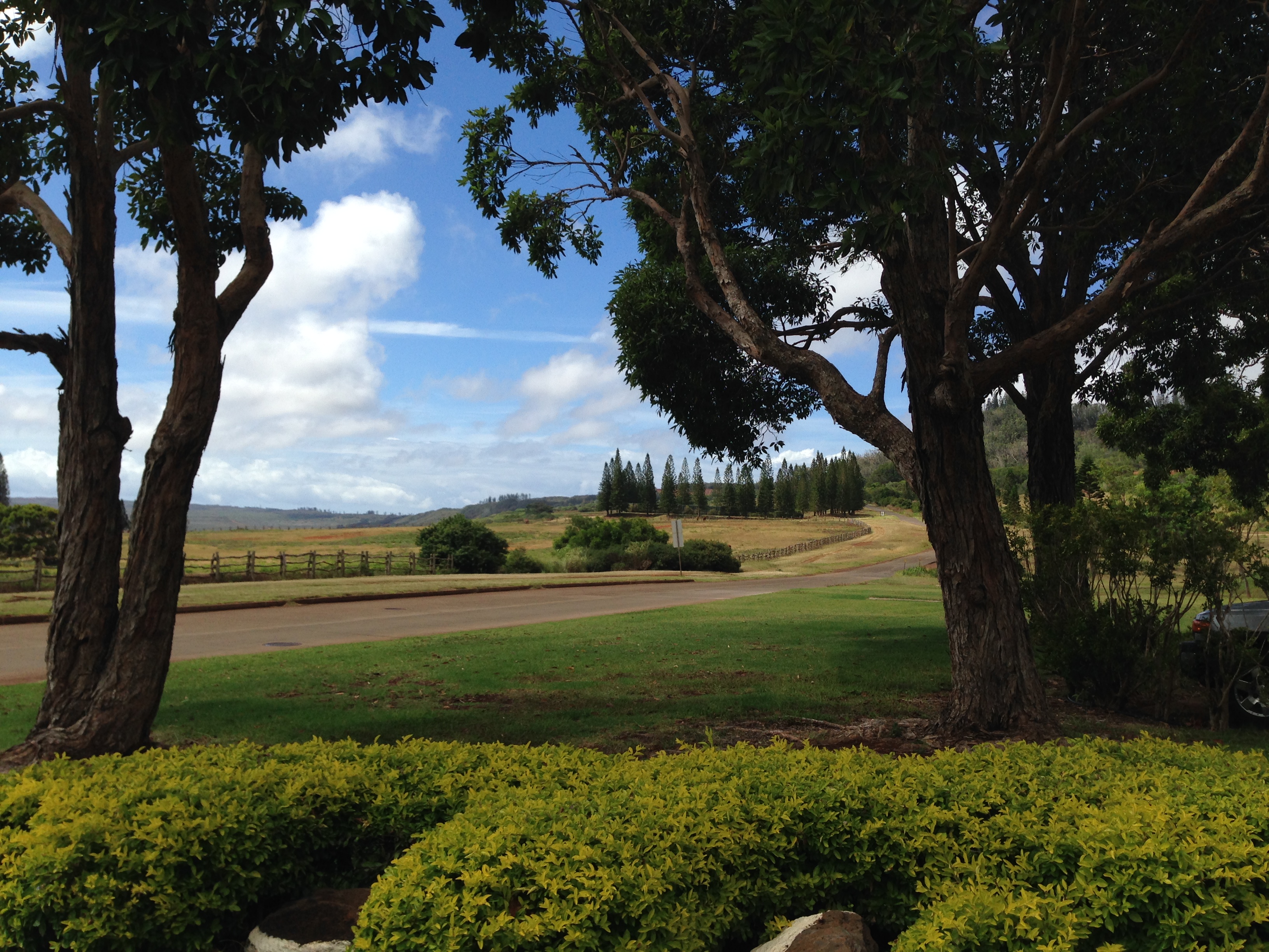 On Lanai, the landscape has its own beauty and is completely different on the shore as it is in upcountry Lanai. This view below is of the lush gardens at the Four Seasons Lodge at Koele. The air is crisp here. The manicured Japanese gardens are stunning. Icing on the cake is the orchid house they have onsite. Rain or shine, gorgeous.