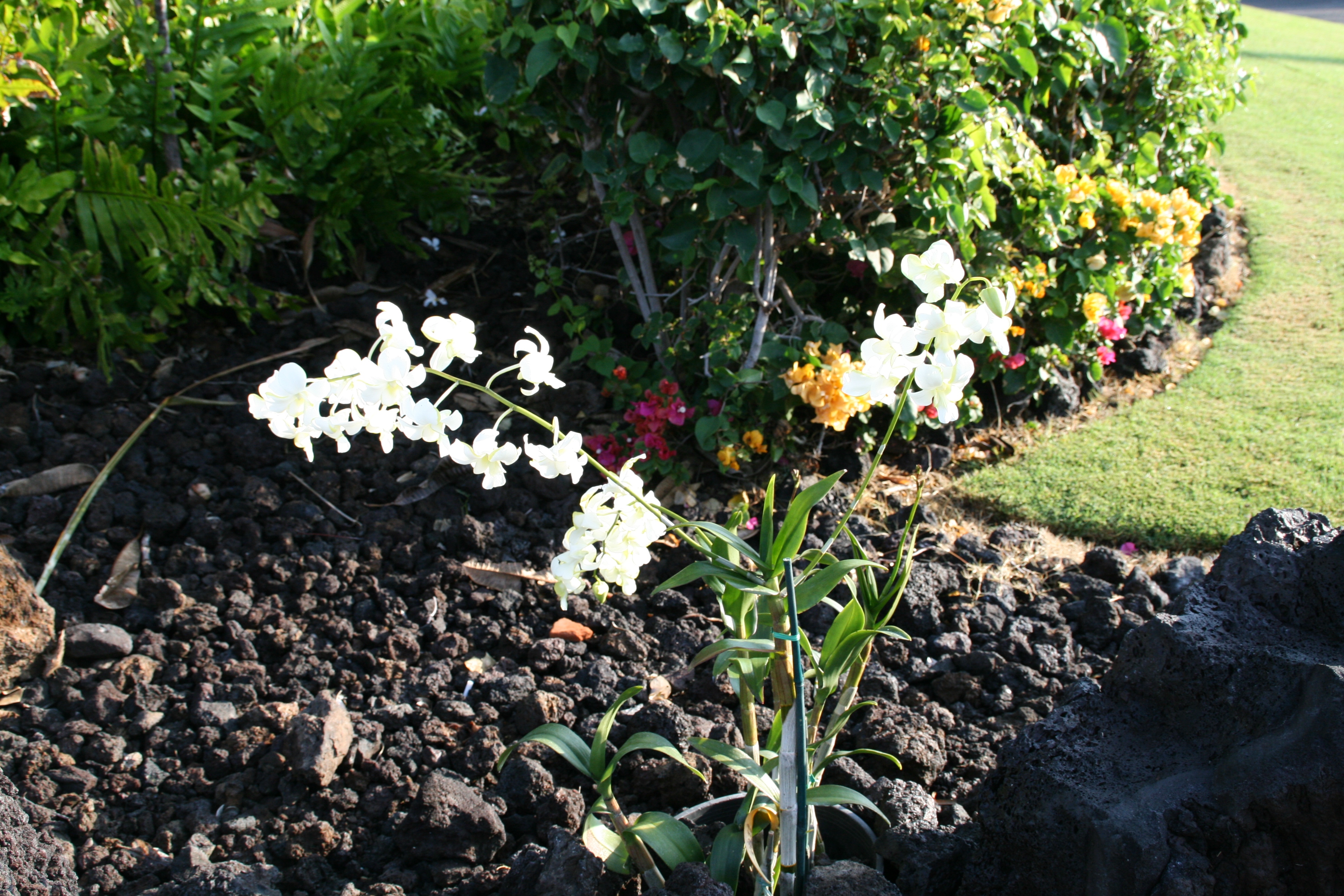 On Lanai, the landscape has its own beauty and is completely different on the shore as it is in upcountry Lanai. This view below is of the lush gardens at the Four Seasons Lodge at Koele. The air is crisp here. The manicured Japanese gardens are stunning. Icing on the cake is the orchid house they have onsite. Rain or shine, gorgeous.